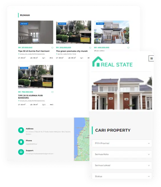 Dengan memiliki website, peluang usaha property anda akan terlihat profesional, dan lebih memudahkan para calon customer untuk melihat listing property milik anda.