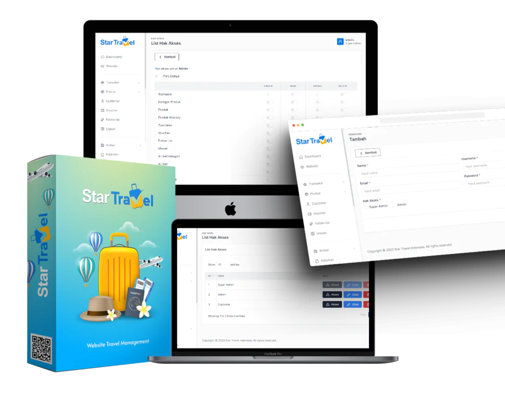 Startravel menyediakan menu hak akses untuk bisa mengklasifikasikan (admin, super admin dan customer)