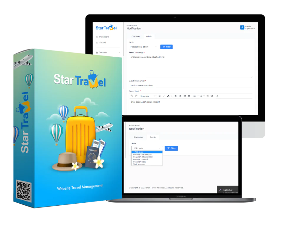 StarTravel dapat membantu Anda mengelola database seperti menambahkan paket perjalanan, mengatur harga dan membalas pesan masuk dari calon customer.